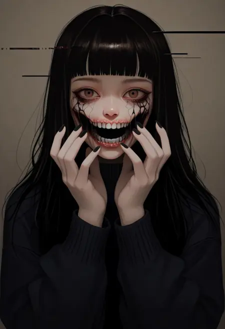 代替タグ: グリッチ、ホラー(テーマ)、絵の具の垂れ、(色)絵の具、煙、涙、叫び声