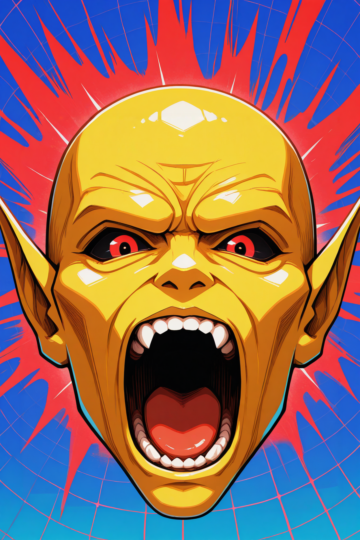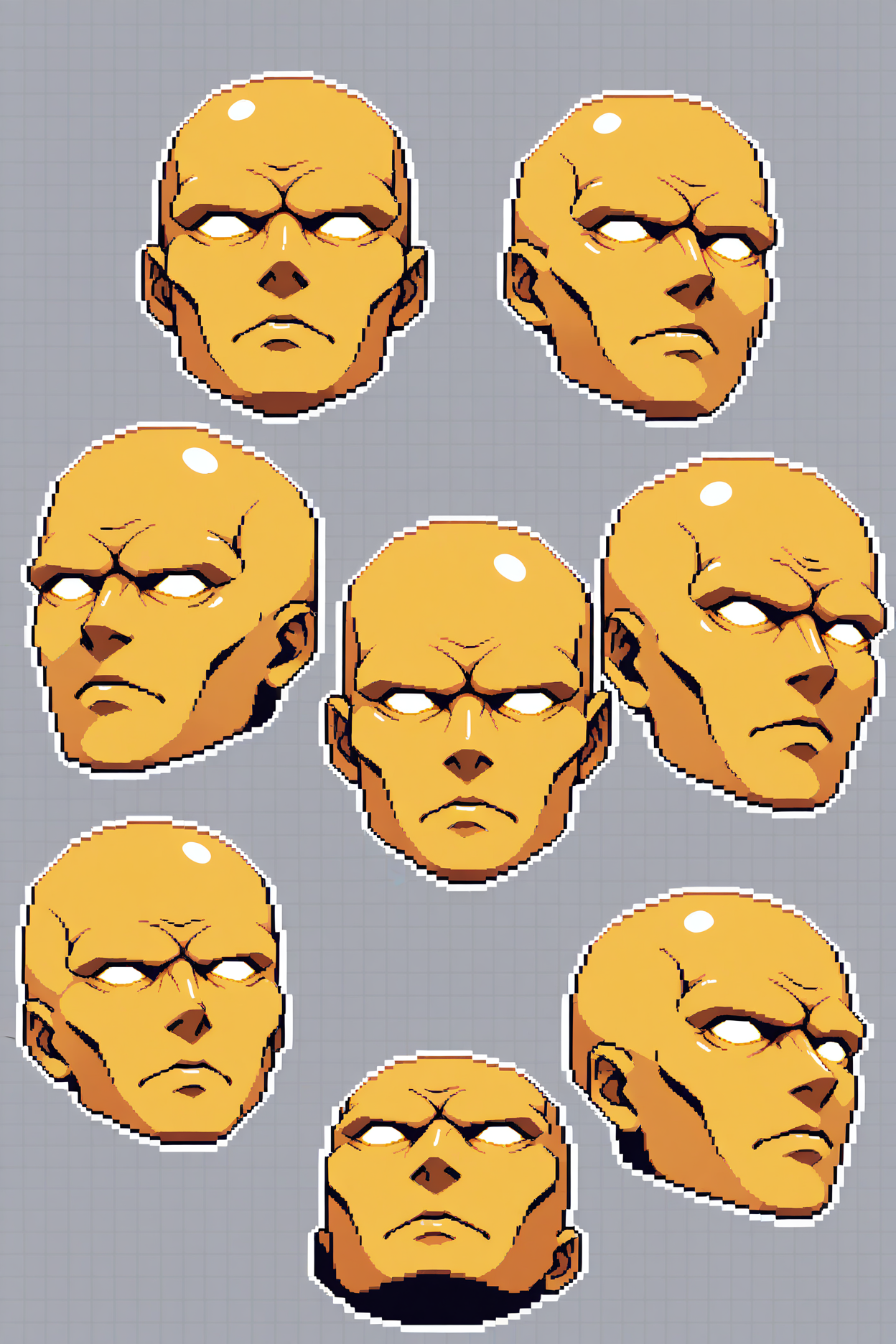触发词为 "smtYH",且必须包含 "黄色皮肤,无人类,秃头,无身体的头颅"。