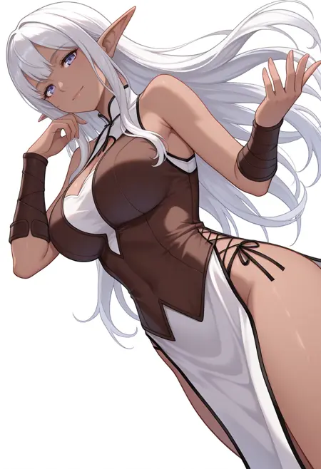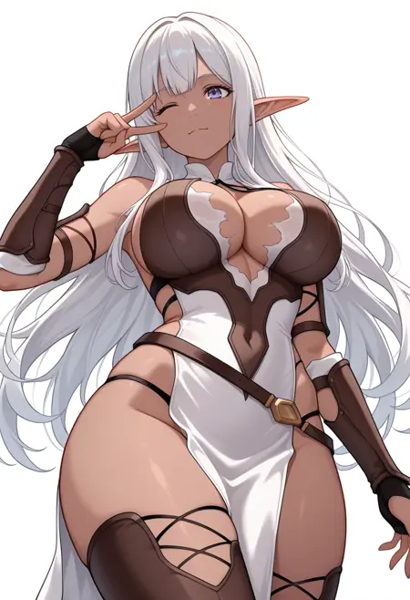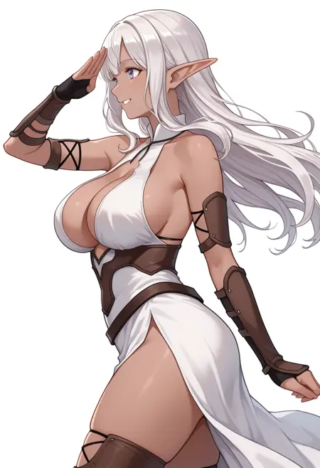 darcia_cnr, 1girl,dark-skinned female, dark elf, pointy ears, long hair,large breasts,