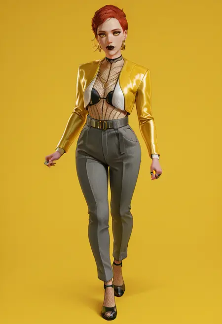 LoRA of Aurore Cassel, a memorable side character from Cyberpunk 2077 . It captures Aurore’s short red hairstyle, golden eyes and futuristic fashion. Ideal for cyberpunk-themed renders, portraits, and stylish compositions.