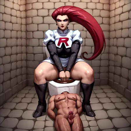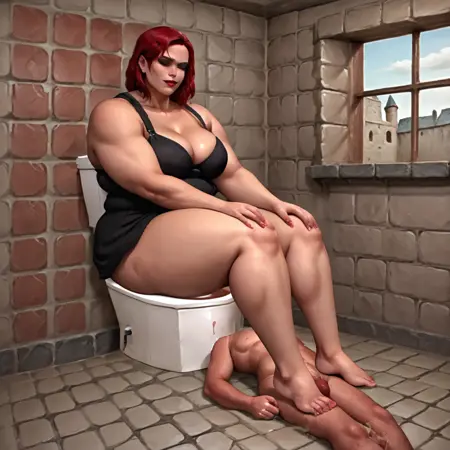 生成一张大体型女性坐在马桶上,下方有奴隶的图像。在1024 x 1024尺寸下效果最佳,其他尺寸似乎有些问题。