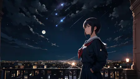 The strengths of this model is that you get a very soft illustrative style model with bright texturing but with very powerful scenery and landscapes. V3 and V3.2 are best for generating generating anime girls. VV(5) is the most powerful but it's also the most wild. Use it if you really want some cool and unique stuff.