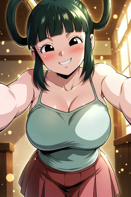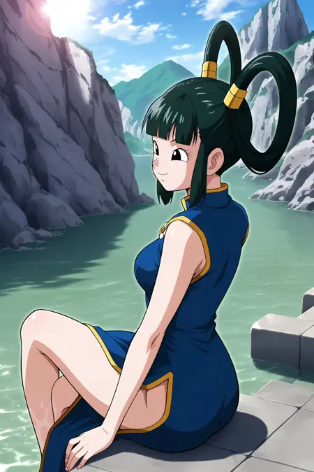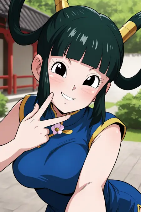 ユリン、髪の輪、濃い緑色の髪、黒い目、横髪、まっすぐな前髪