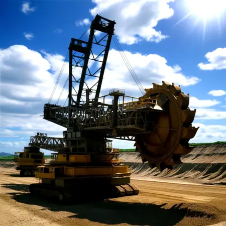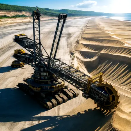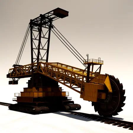 バケットホイール型掘削機(BWE)は、大規模な鉱山や掘削現場で土壌や鉱物を効率的に掘り起こすために主に使用される巨大な機械である。その最も特徴的な部分は、回転するバケットホイール(バケットが円形に配置されたもの)で、これにより大量の土と岩を連続的に掘り起こす。