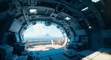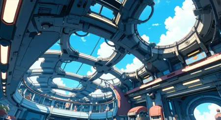 색상 지정은 특히 외부 장면에서 프롬프트에 중요한 역할을 하며, 내부 환경은 일관된 파란색 중심 미학을 유지합니다. 이 모델은 명백히 애니메이션 스타일로 일관되게 렌더링된 복잡하고 정교한 기계적 환경을, 미래적 사이버펑크 외관으로 생성하도록 설계된 것으로 보입니다.