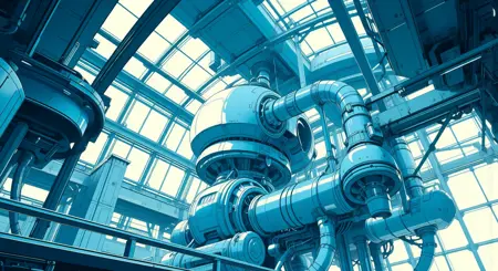 원자로실 — 기계 장비가 있는 산업적/기술적 환경