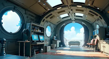 전형적인 프롬프트 구조: anime xgx airship [location type], [lighting directive]