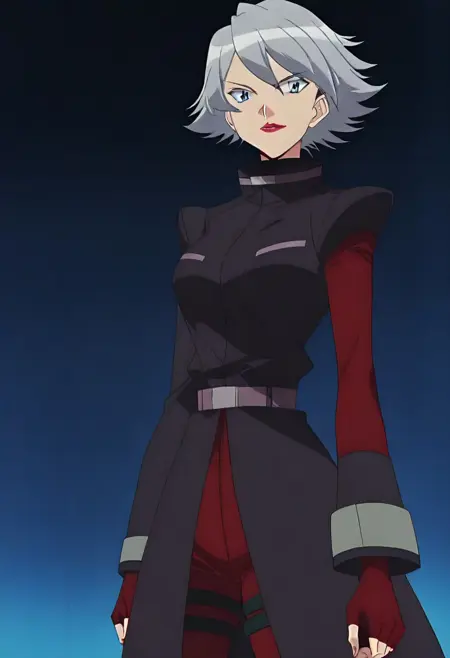 PKMNHunterJ, 1girl, short hair, grey hair, grey eyes, blue eyes, makeup, lipstick, red lips