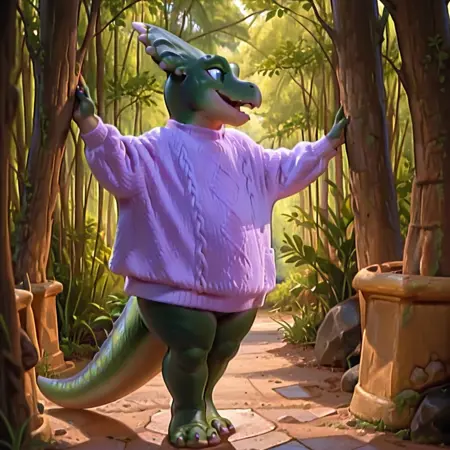 CharleneDSil, anthro, Protoceratops, female, green skin, blue eyes,