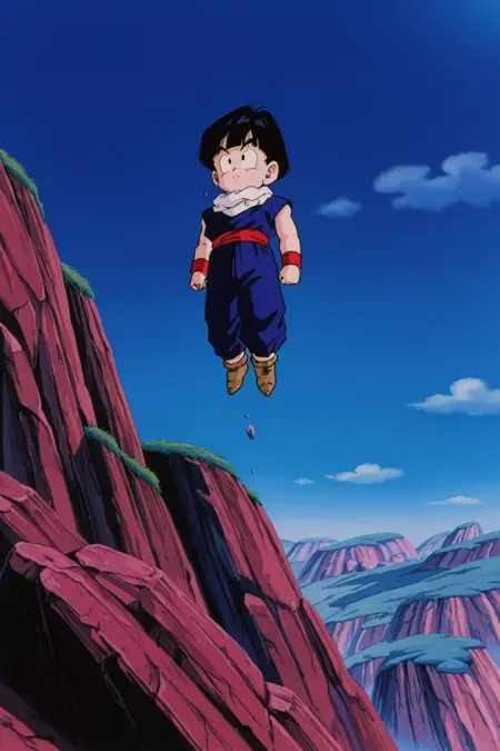 スカウター、グレーのアーマー、腰に巻きつけた尾、黒いブーツ、グレーの指なし手袋、 hipアーマー、黒いショーツ