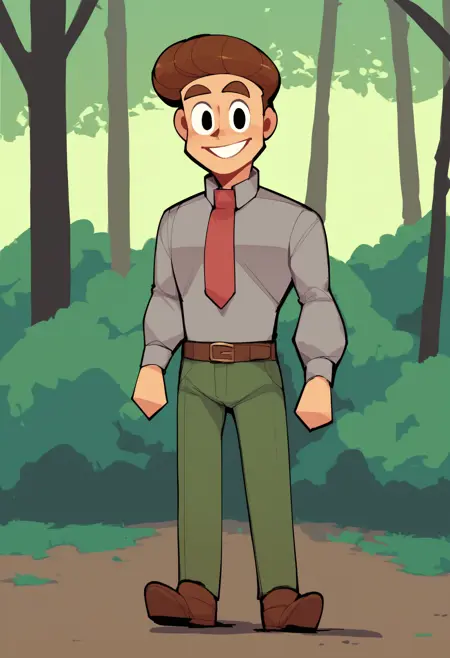 belt, green pants, brown shoes