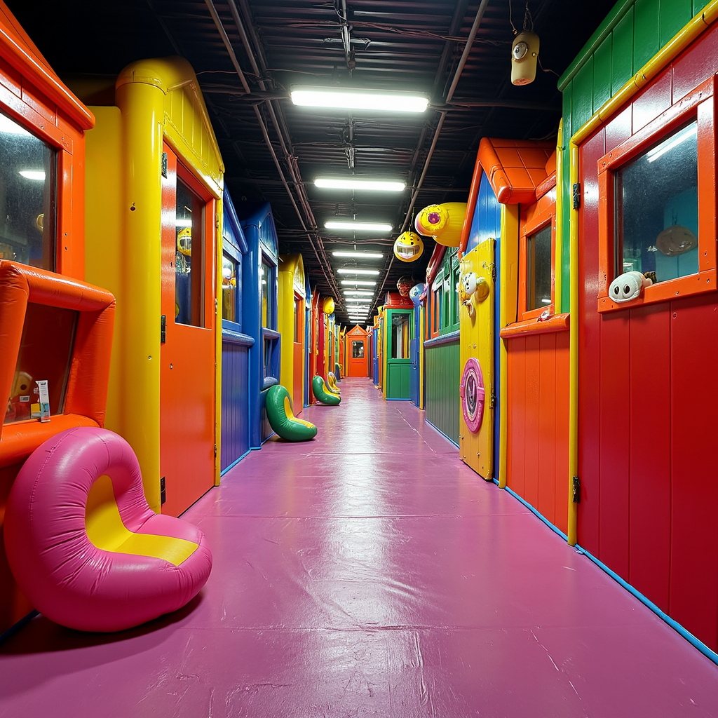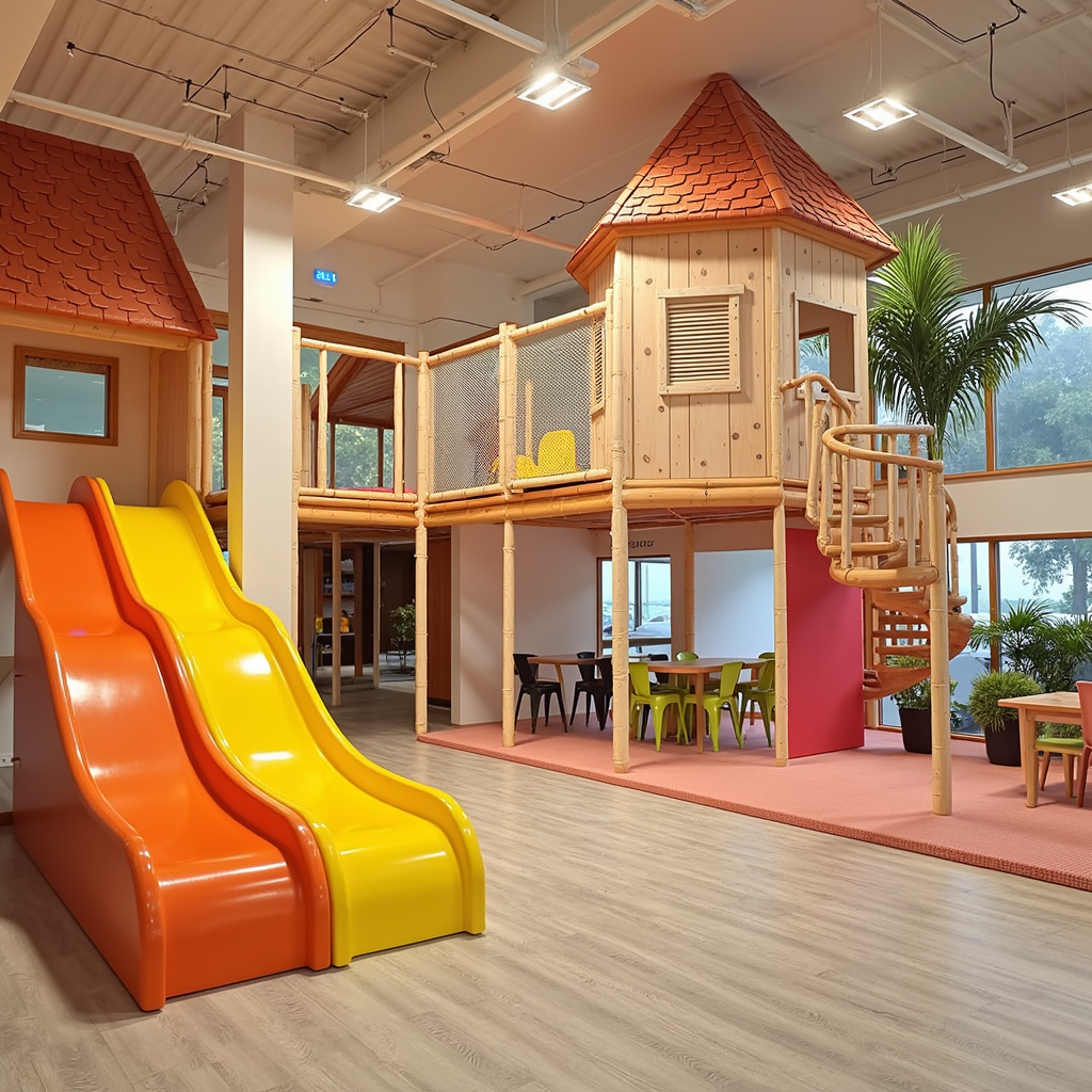 动态游乐区:生成包含互连滑梯、隧道、攀爬墙和感官面板的广阔室内空间。
