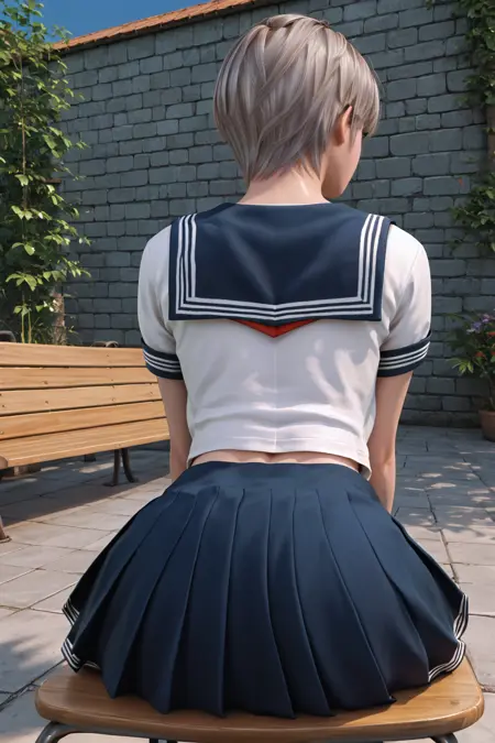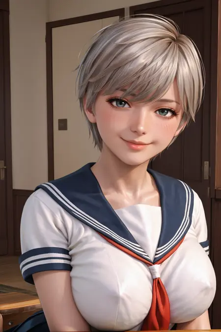 FreericSk, short hair, silver hair, school uniform, serafuku, skirt,