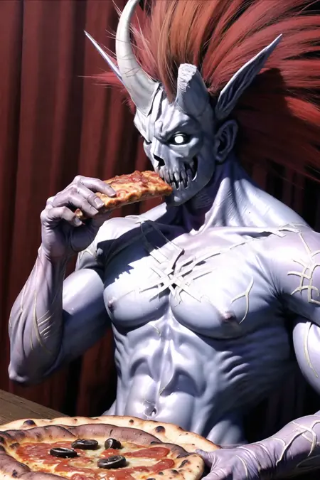 尤其是标志性的角的还原度,需要多次尝试才能获得理想效果。《百鬼讨伐绘卷》中赤王的断角版本尤其如此。