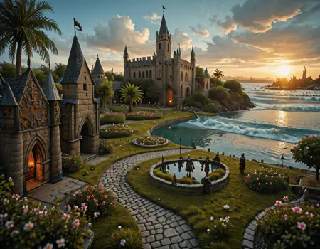 Travel with your home castle on its island anywhere. Just attach it to the ground using a rope or a chain when you take a break.