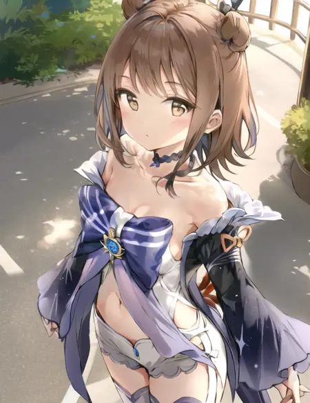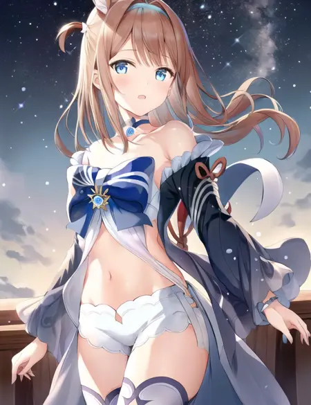 トリガーワード:official costume, white short shorts, choker, wide sleeves, white thighhighs, vision \(genshin impact\)