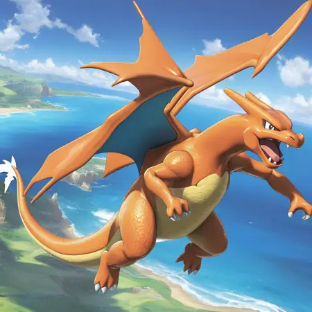 You should use the trigger words Charizard, pokemon, (For best results)