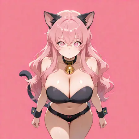 ota_louisecat,cat_girl,cat_ears,cat_tail,black_fur_trim,black_fur-trimmed_bikini_top_only,strapless,fur-trimmed_panties,black_fur-wrist_cuffs,navel,bare_legs,bare_arms,black_fur-ankle_cuffs,bell_collar,jingle_bell,