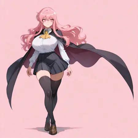 ota_louiseschool,yellow_ascot,collared_shirt,white_shirt,long_sleeves,black_skirt,pleated_skirt,black_thighhighs,zettai_ryouiki,loafers,