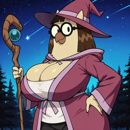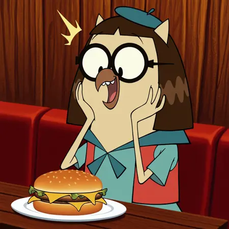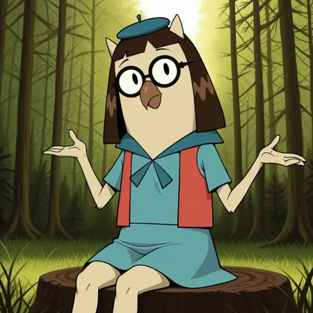 Almondine Nestelle is a side character from the Cartoon Network show Camp Lazlo. I have trained this with about 40 image screencaps in 1080p. It sometimes likes to generate feathered tuft around the neck since real owls have those, but it's not accurate to the show's design. Either increase the weight by 0.1 or put "neck tuft, feathers" in the negative prompts should help with that if you don't want it showing. Sometimes her neck appears more humanoid than an owl neck if so increase the weight by 0.1 - 0.2 if you want to help mitigate that. Also her bangs won't always look accurate to how it's supposed to show either. Everything else works pretty great from my testing.