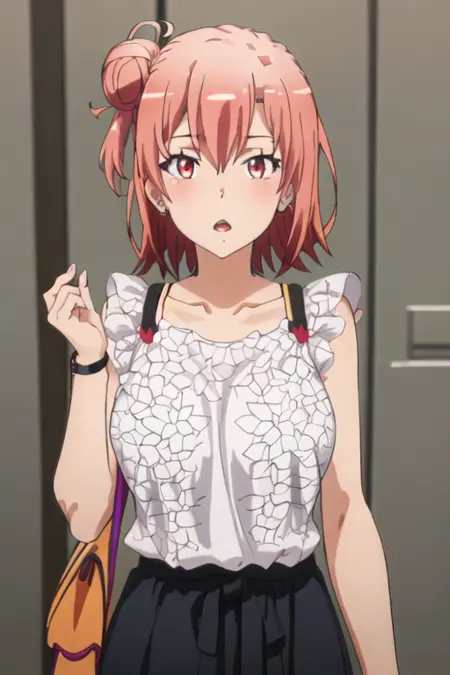 The trigger word is yuigahama_yui_yahariorenoseishunlovecomewamachigatteiru, and the pruned tags are short_hair, hair_bun, single_hair_bun, pink_hair. When some features (e.g. hair color) are not so stable at some times, you can add these them into your prompt.