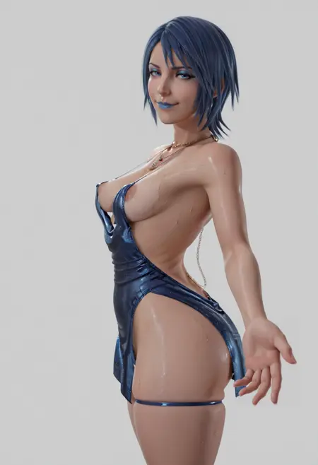 DDivaDress, halterneck, plunging neckline, cleavage, sideboob,detailed fabric, multiple necklace, multiple bracelets, thigh strap, skindentation, back chain,