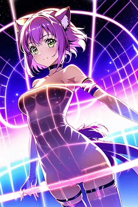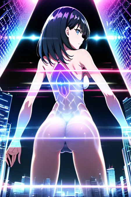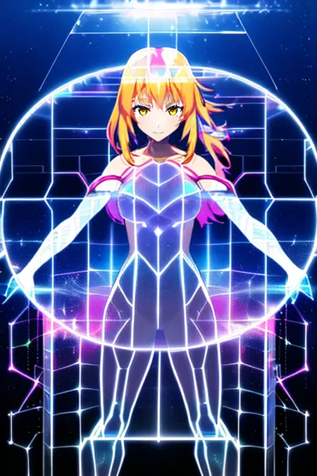 これは、データモッシングやホログラフィックのようなデジタルまたはサイバースペース変換効果を持つLoRAです。よりホログラフィックにしたい場合は、「holographic ..」をご使用ください。