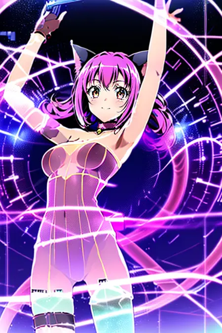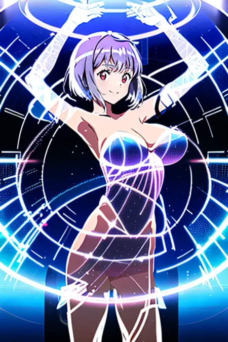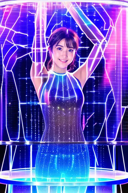이것은 데이터 모싱 및 홀로그래픽 같은 디지털 또는 사이버 공간 변환 효과를 적용한 LoRA입니다. 더 홀로그래픽한 효과를 원하시면 "holographic .."를 사용하세요.