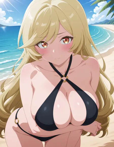 mlss, 1girl, blonde hair, long hair, orange eyes