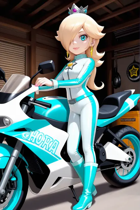 outfit_7, 자전거복, 바이크수트, 별 모양 브로치, 청록색 부츠,