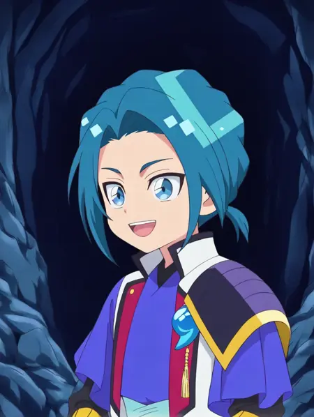 kakeru amabe,blue hair,blue eyes,short hair,ponytail,