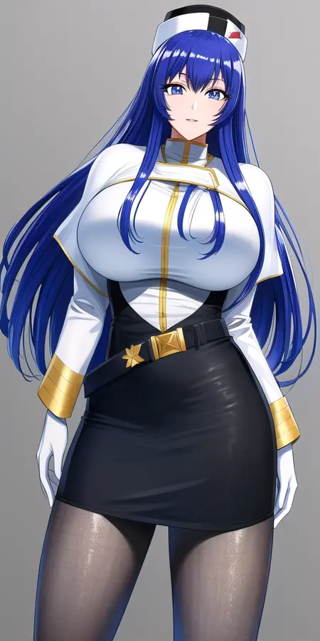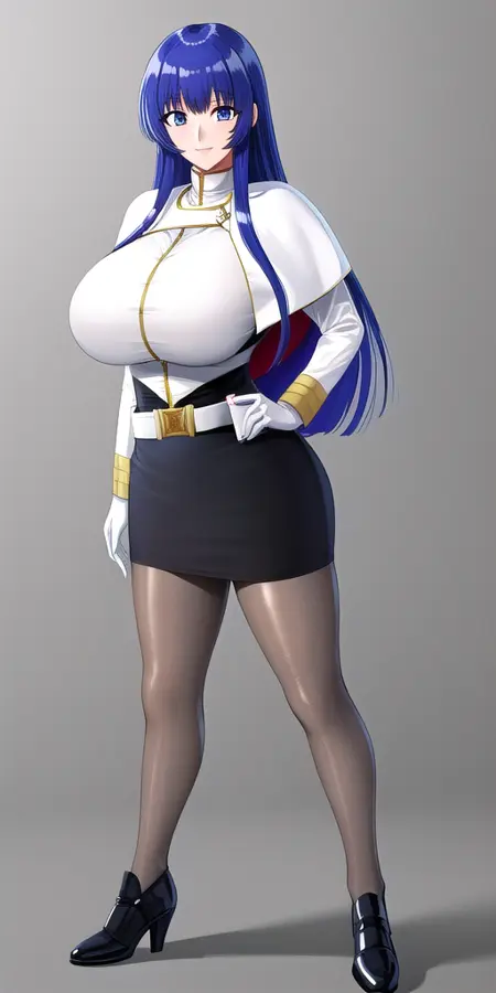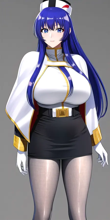 Military_uniform_White_turtleneck_jacket_Black_pencil_skirt_Black_pantyhose_White_capelet: Her captain outfit.