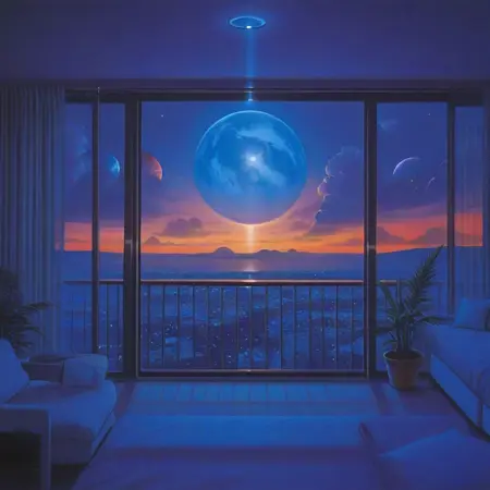 人物なし、グラデーションの空、黒い背景、反射、グラデーション、赤い背景、電気、SF、宇宙船、星座、シュルレアリスム、リアリスティック、