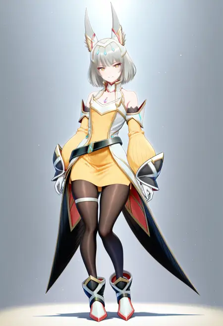 • xenoblade、黄色长裙、喇叭鞋、紧身裤、腰带、可拆卸袖子、燕尾服、白色手套、大腿护具、可拆卸领子