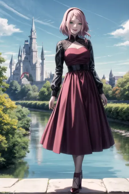 If you want to dress Sakura in your own clothes, I recommend a weight of 0.8 - 0.9, it may be necessary to set a minimum weight of 1.2 on your custom clothes (see example in the preview images - image 11). The default tags that are recommended to keep: sakuraTheLast, forehead mark, red hairband, green eyes