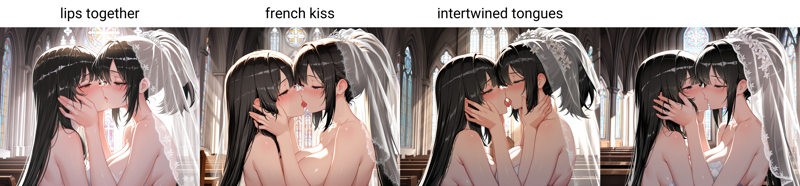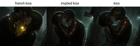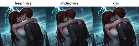 • Intended to be similar to kiss but help steer the output if you want the subjects to be shown in a way that does not clearly show them kissing.