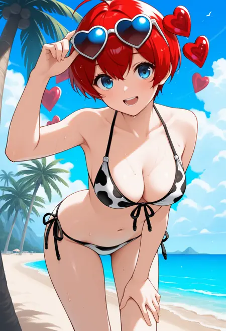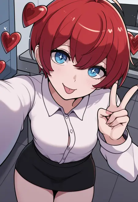 トリガー+外見: s0ph1a, 短い髪, 赤髪, 離れた髪, ハート, あほ毛, ツインテール, 青い目
