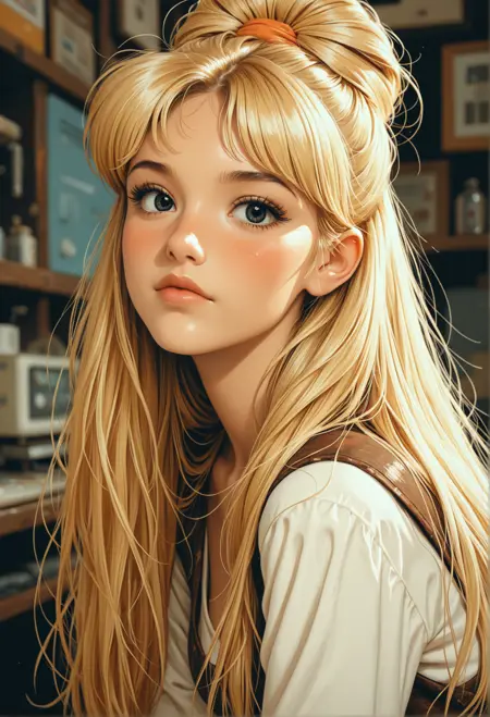 우아한 초상화, 부드러운 조명 장면, 하이패션, 세밀한 애니메이션 융합, 캐릭터 중심의 구성.