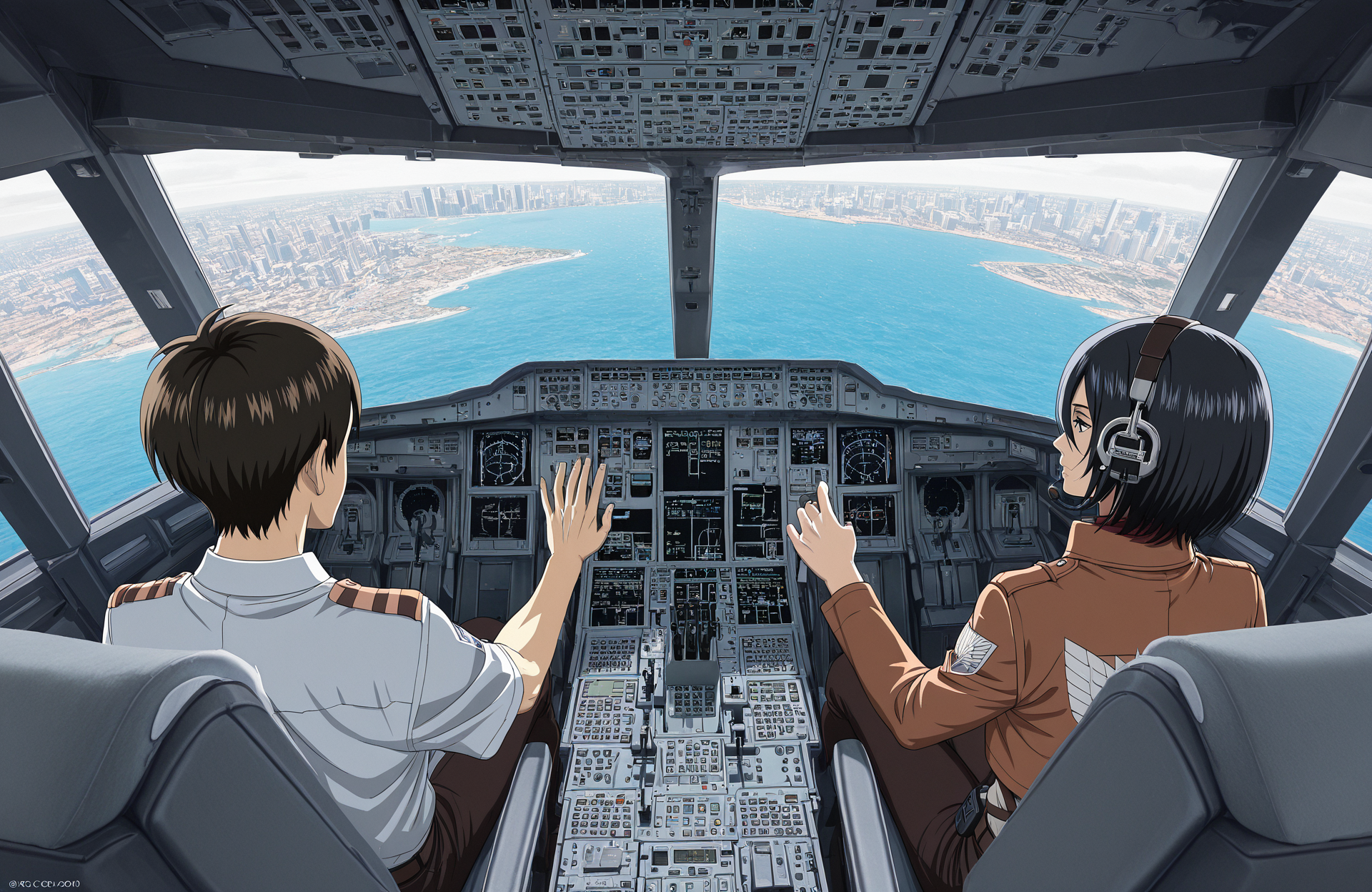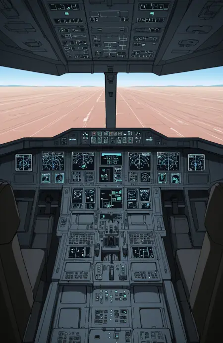 이 버전은 많은 실제 이미지로 학습되었습니다. 솔직히 말해 항공기 내부의 좋은 애니메이션 이미지는 존재하지 않기 때문에, 제가 직접 만들어야 했습니다. 이 조종실은 에어버스 A380의 것이며, 에어버스는 조종봉 대신 조이스틱을 사용하기 때문에 조종실이 약간 "이상해" 보일 수 있습니다.
