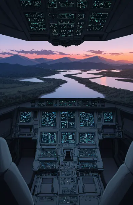 此版本基于大量真实图像进行训练。老实说,几乎没有好的飞机内部动漫图像,所以我不得不自己制作。这个驾驶舱取自空客A380,因此可能看起来有点“奇怪”,因为它缺少操纵杆——空客使用操纵杆进行导航。
