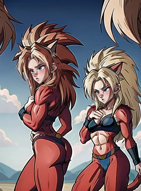 ssj4, abs, 体毛, ジュエリー, 長い髪, 猿の尾, 筋肉質, 乳房, 赤い毛, ソロ, とげとげした髪, スーパーサイヤ人, 尾,