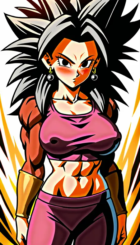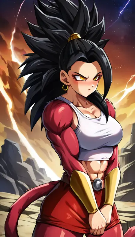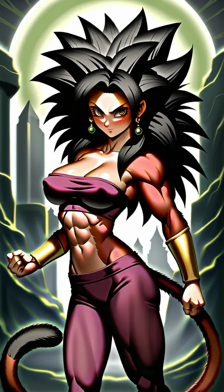 ssj4, abs, 몸 털, 보석, 긴 머리, 원숭이 꼬리, 근육질, 유두, 붉은 털, 혼자, 돌출된 머리카락, 수퍼 사이어인, 꼬리,