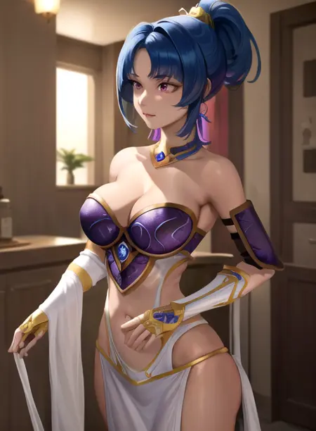 サポートしてください:Ko-fi依頼:こちらSudekiのAilish0.7-1でテスト済みトリガーワードailish、紫の目、ポニーテール、短い髪、青い髪、追加アーマー、裸の肩、へそ、胸元、手袋、紫のタイツ