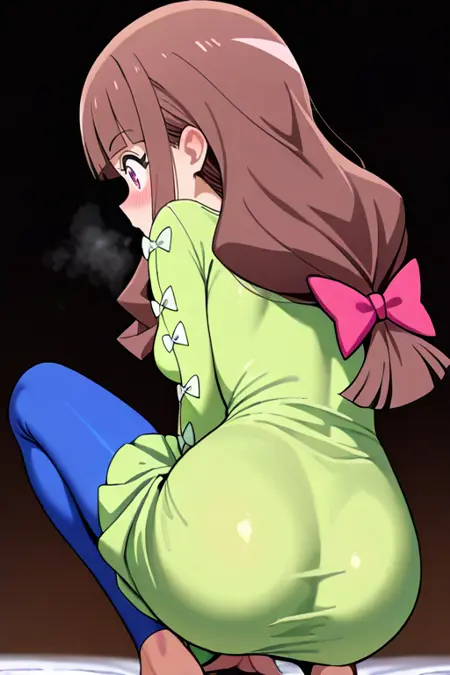中等胸部,ruliSk,长袖,绿色连衣裙,蓝色紧身裤,鞋子,棕色鞋履,