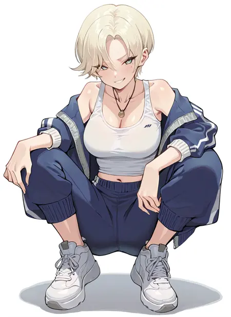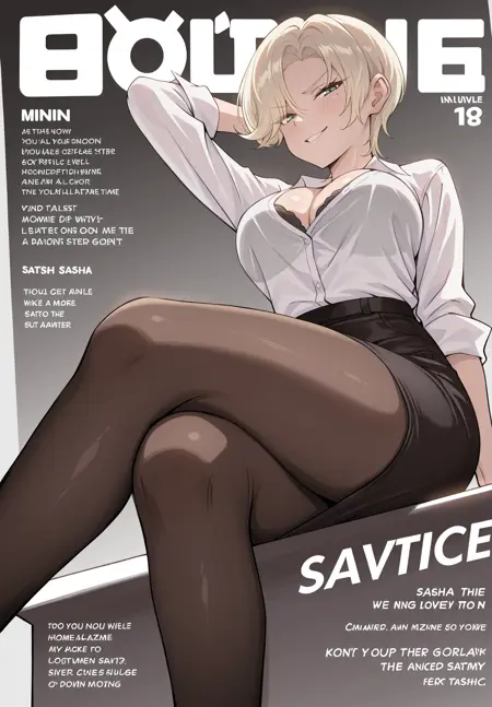 Main trigger words: sasha-jagaimo, short hair, blonde hair, mole under eye, green eyes
