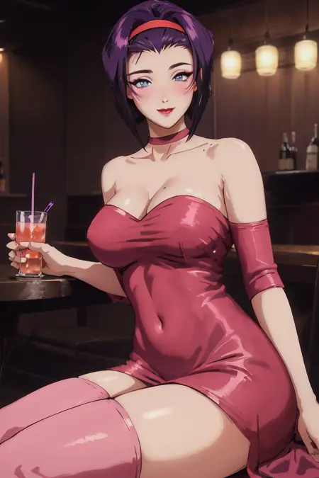 Faye Valentine (フェイ・ヴァレンタイン Fei Varentain?) is a former wanted bounty head who later became a member of the bounty hunting crew aboard the Bebop. Although appearing to be no more than 23 years old, Faye is actually around 77 years old due to her being previously put into a cryogenic freeze after a space shuttle accident, wherein she spent fifty-four years in suspended animation.