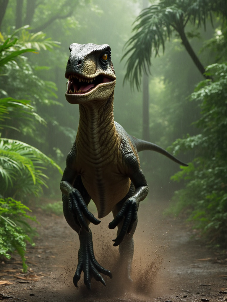 这是一个基于《侏罗纪公园》风格迅猛龙概念与设计训练的Flux LoRA,参考了《侏罗纪公园》系列电影多个时期的影像。模型使用约60张精心挑选的图像(包括电影剧照、机械模型和宣传素材)在512分辨率下训练而成。该模型精准捕捉了原始《侏罗纪公园》电影中迅猛龙的经典轮廓与风格——长吻、锋利的爪子、聪慧的表情、纤瘦的体型,以及标志性的匍匐姿态。