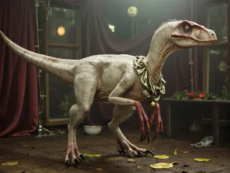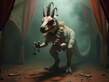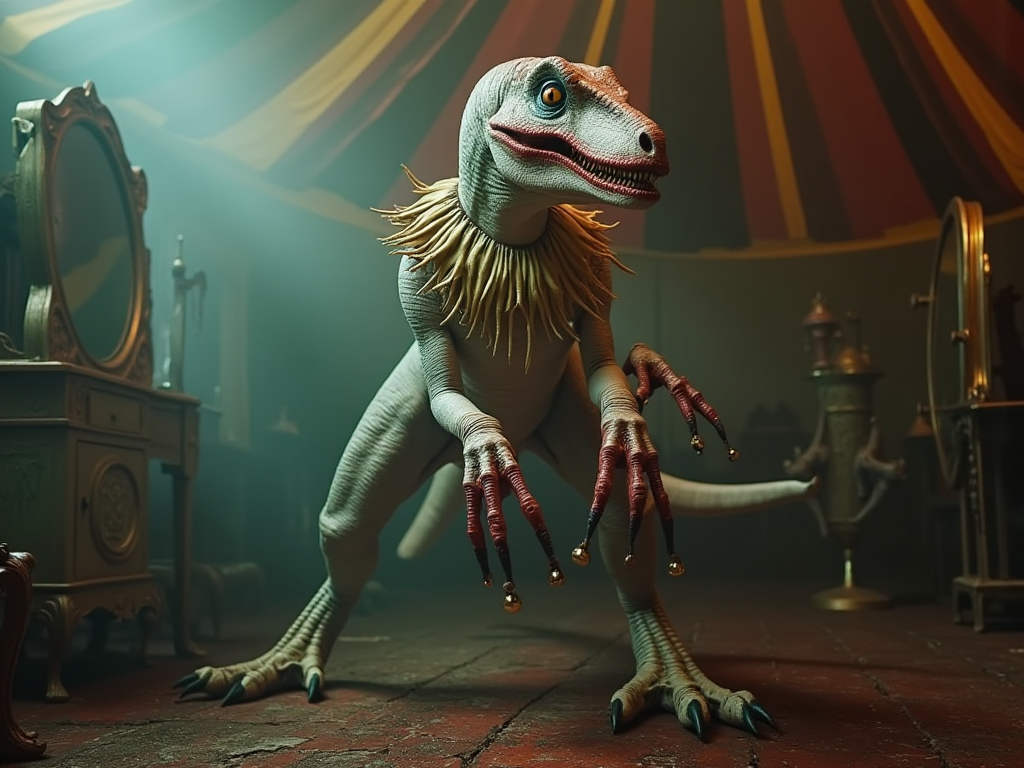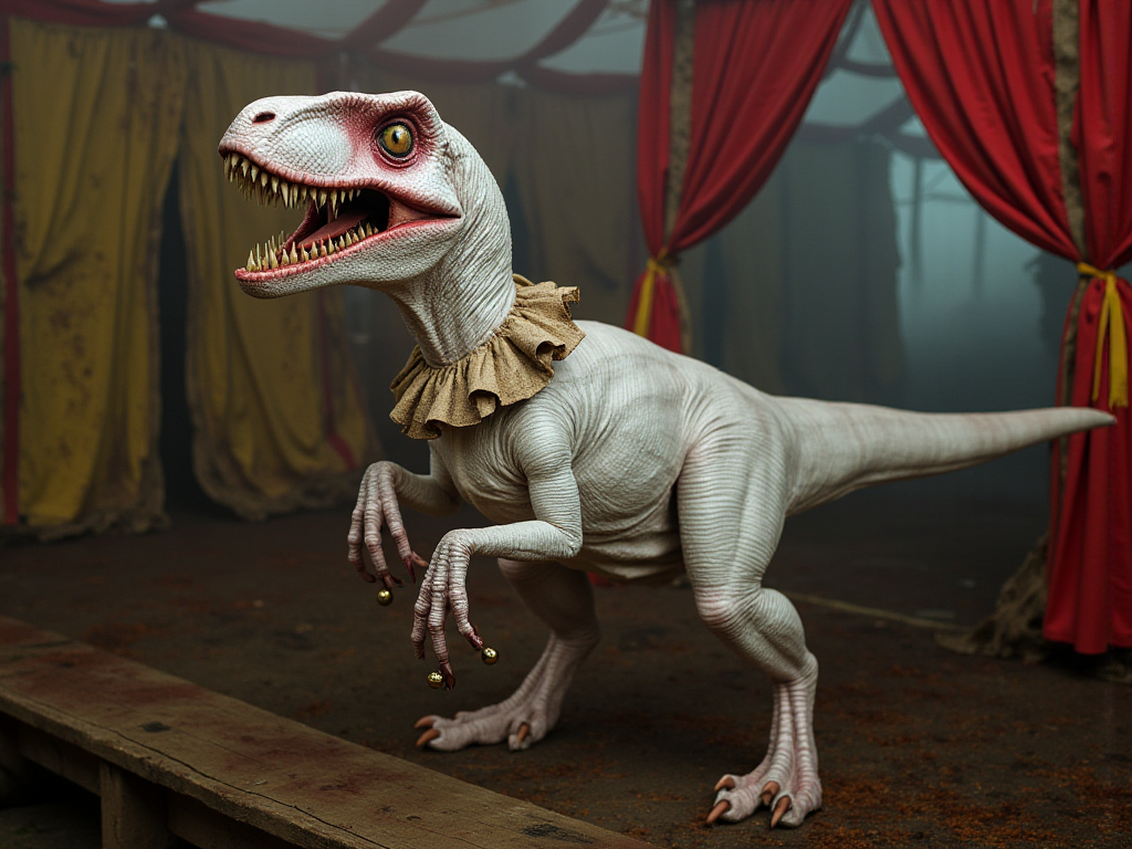 • JPVelociraptor with clown paint and bells in a circus tent of horrors