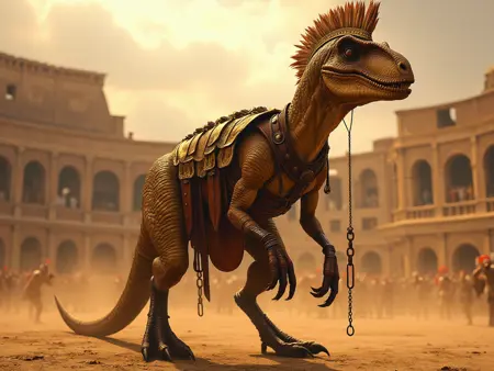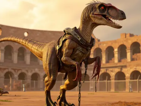 • JPVelociraptor 穿着部落盔甲,站在竞技场中,角斗士风格