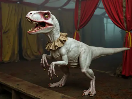 这是一个基于《侏罗纪公园》风格迅猛龙概念与设计训练的Flux LoRA,参考了《侏罗纪公园》系列电影多个时期的影像。模型使用约60张精心挑选的图像(包括电影剧照、机械模型和宣传素材)在512分辨率下训练而成。该模型精准捕捉了原始《侏罗纪公园》电影中迅猛龙的经典轮廓与风格——长吻、锋利的爪子、聪慧的表情、纤瘦的体型,以及标志性的匍匐姿态。